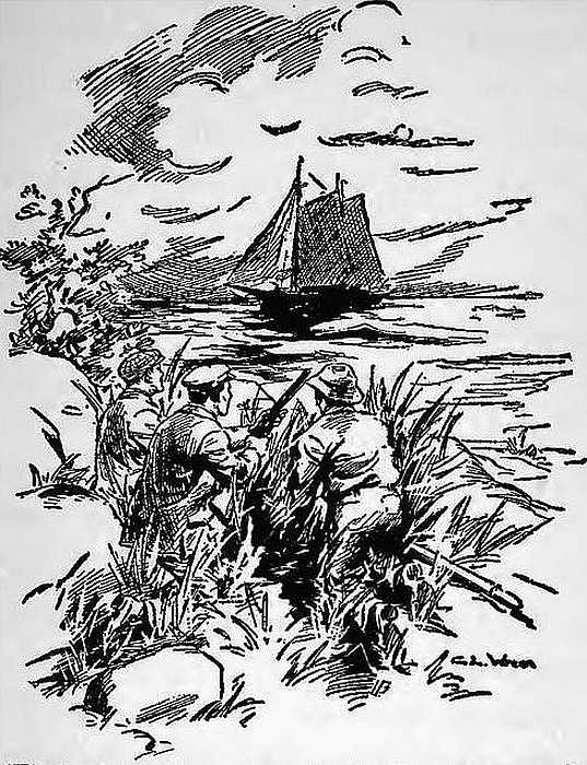 14“We’ll take your injured man ashore,” he flashed out. “Lay to where you are and we’ll pick you up without trouble. Expect us in about two hours.”