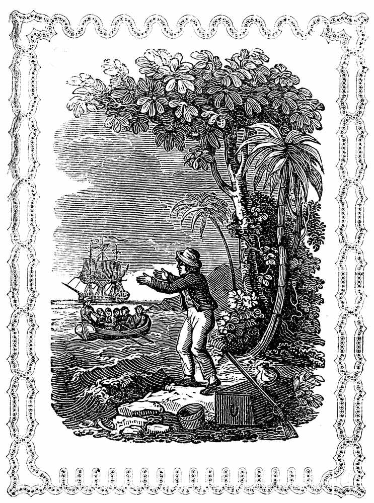 From the beginning to the end of September, the vessel remained undergoing repairs. The disagreement, instead of being made up, became greater every day, and strengthened the resolution which Selkirk had made to leave the vessel. This was accordingly concluded on, and just before getting under way, he was landed with all his effects; and he leaped on shore with a faint sensation of freedom and joy. He shook hands with his comrades, and bade them adieu in a hearty manner, while the officer sat in the boat urging their return to the ship, which order they instantly obeyed; but no sooner did the sound of their oars, as they left the beach, fall on his ears, than the horrors of being left alone, cut off from all human society, perhaps forever, rushed [Pg 13]upon his mind. His heart sunk within him, and all his resolution failed. He rushed into the water, and implored them to return and take him on board with them. To all his entreaties his comrades turned a deaf ear, and even mocked his despair; denouncing the choice he had made of remaining upon the island, as rank mutiny, and describing his present situation as the most proper state for such a fellow, where his example would not affect others.