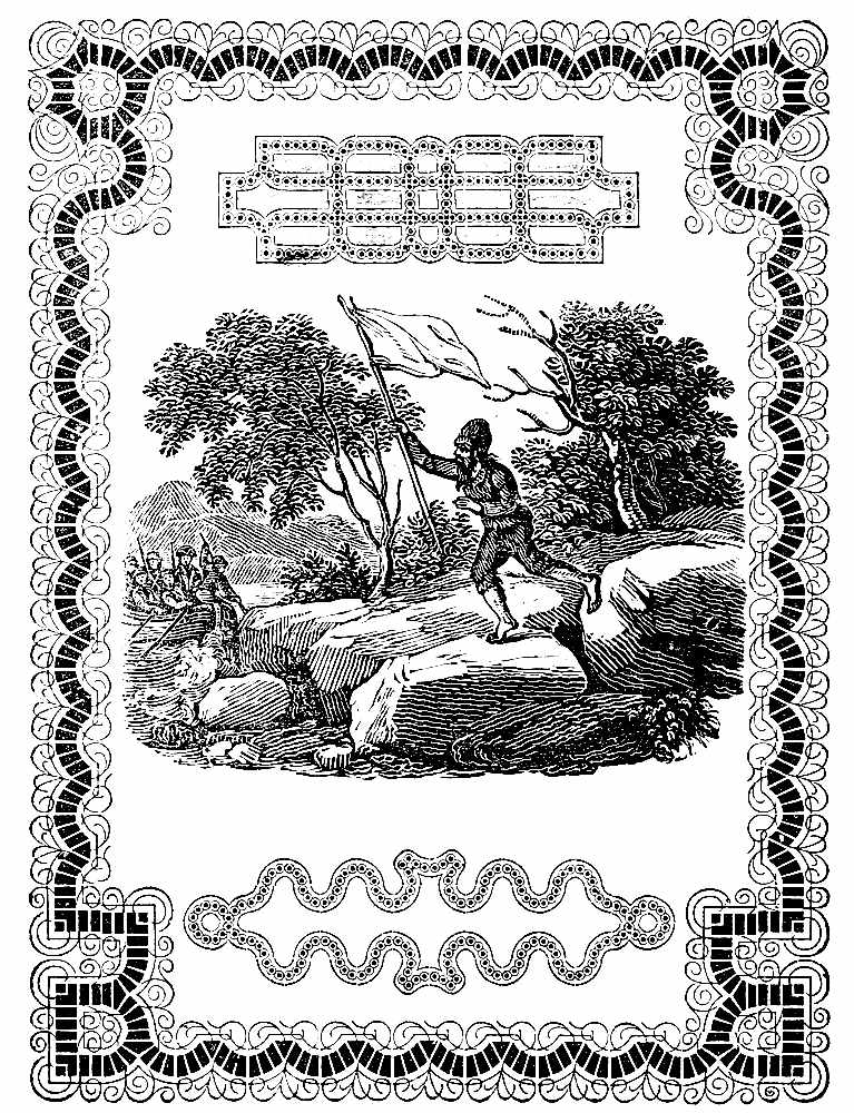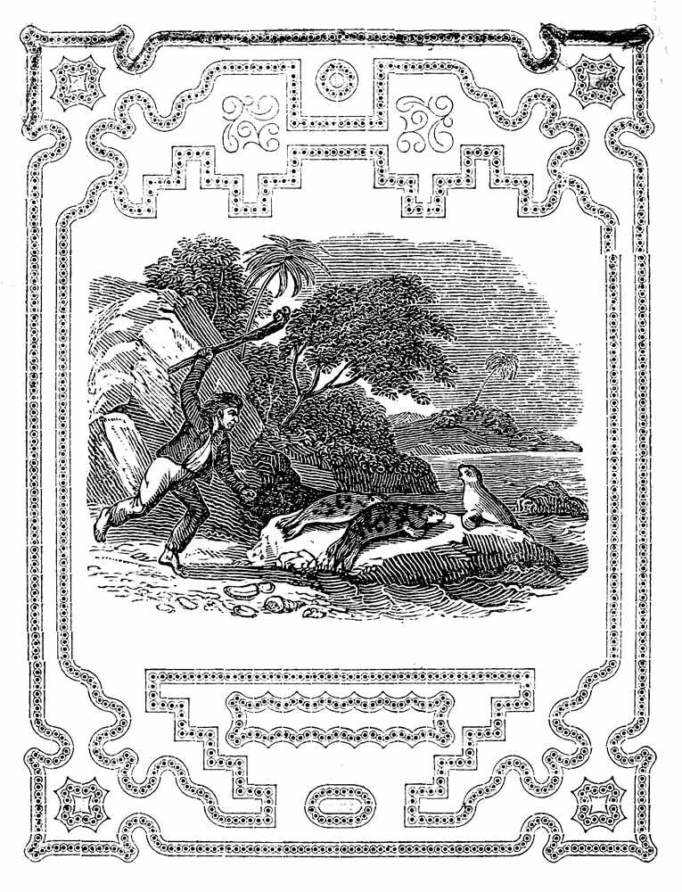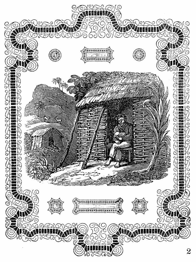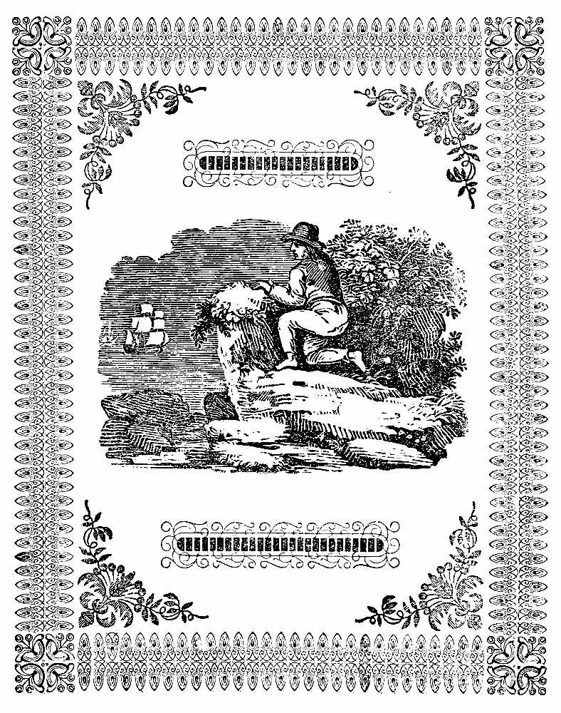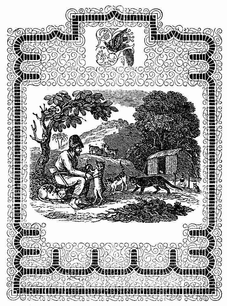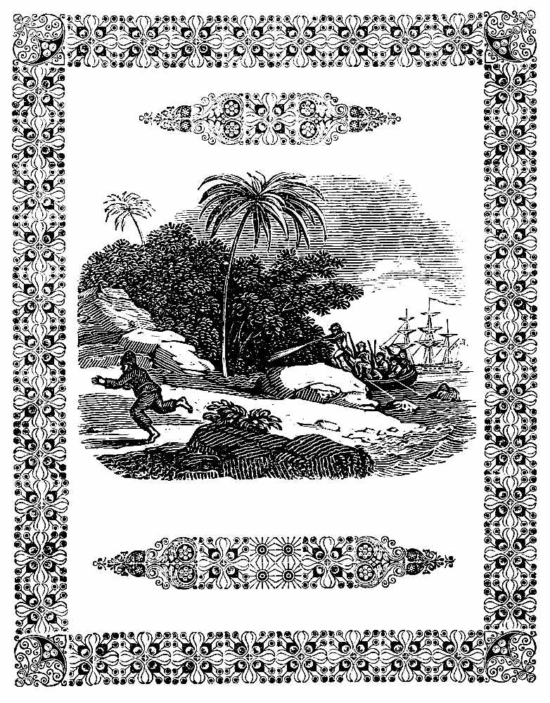 Having food in abundance, and the climate being healthy and pleasant, in about eighteen months he became[Pg 20] easy in his situation. The time hung no longer heavy upon his hands. His devotions and frequent study of the Scriptures, soothed and elevated his mind: and this, coupled with the vigor of his health, and a constant serene sky, and temperate air, rendered his life one continual feast. His feelings were now as joyful as they had before been sorrowful. He took delight in every thing around him; fixed up the hut in which he lay, with fragrant branches, cut from a spacious wood, on the side of which it was situated, and thereby formed a pleasant bower, fanned with continual breezes, soft and balmy as poets describe, which made his repose, after the fatigues of the chase, very gratifying.