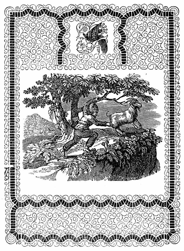 The island abounds in goats, which he shot while his powder lasted, and afterwards caught by speed of foot. At first he could only overtake kids: but latterly, so much did his frugal life, joined to air and exercise, improve his strength and habits of body, that he could run down the strongest goat on the island in a few minutes, and tossing it over his shoulders, carry it with ease to his hut. All the by-ways and easy parts of the[Pg 24] mountains became familiar to him. He could bound from crag to crag, and slip down the precipices with confidence.