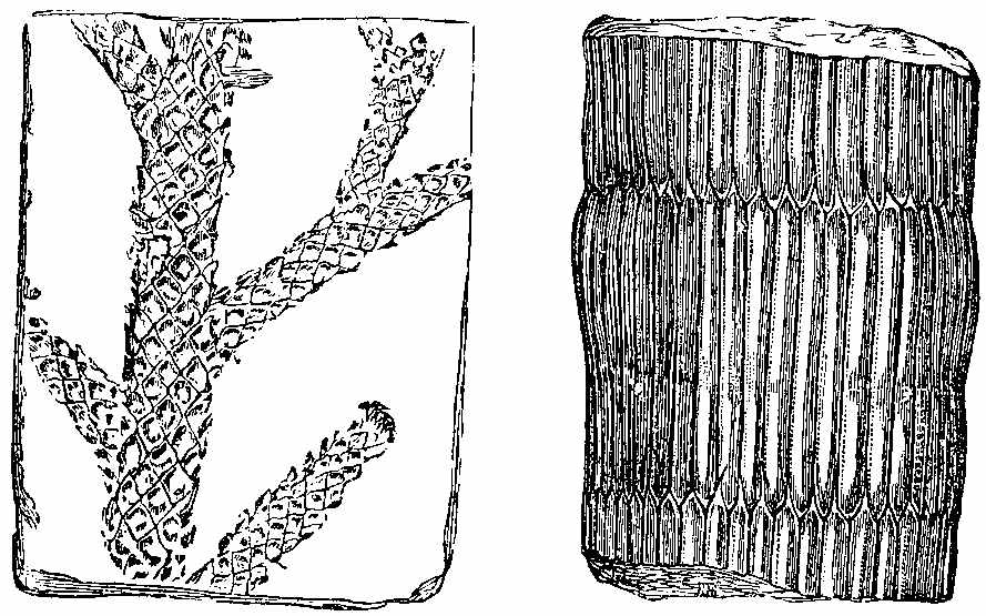 [10] For woodcuts 44, 47, and 48, I am indebted to Dr. H. Bence Jones, who has kindly placed them at my disposal. They were used to illustrate Mr. Carruthers' remarks on the Cryptogamic forests of the Coal period, published in the Journal of the Royal Institution of Great Britain, April 16, 1869. Mr. Carruthers' observations are given in the text.