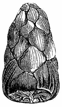 [11] Conjugate spirals result from whorls of usually 2, 3, 5, 8, etc., leaves arranged so as to give 2, 5, 8, etc., parallel spirals, each with an angular divergence equal to ½, ⅓, ⅕, ⅛, etc., of one of the fractions expressing the divergence in an arrangement of alternate leaves.