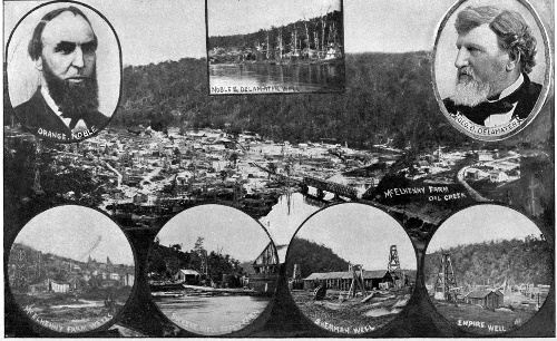 A host of changes, some pleasing and more unutterably sad, have the swift seasons brought. The scene of active operations has shifted often. The great Bradford region and the rich fields around Pittsburg and Butler have had their innings. Parker, Petrolia, St. Petersburg, Millerstown and Greece City have followed Plumer, Shaffer, Pioneer, Red-Hot and Oleopolis to the limbo of forsaken things. Petroleum Centre is a memory only. Rouseville is reduced to a skeleton. Not a trace of Antwerp, or Pickwick, or Triangle is left. Enterprise resembles Goldsmith’s “Deserted Village,” or Ossian’s “Balaclutha.” Tip-Top, Modoc, Troutman, Turkey City, St. Joe, Shamburg, Edenburg and Buena Vista have had their rise and fall. Fagundas has vanished. Pleasantville fails to draw an army of adventurous seekers for oleaginous wealth. Tidioute is an echo of the past and scores of minor towns have disappeared completely. For forms and faces once familiar one looks in vain. Where are the plucky operators who for a half-score years made Oil Creek the briskest, gayest, liveliest spot in America? Thousands are browsing in pastures elsewhere, while other thousands have crossed the bridgeless river which flows into the ocean of eternity.