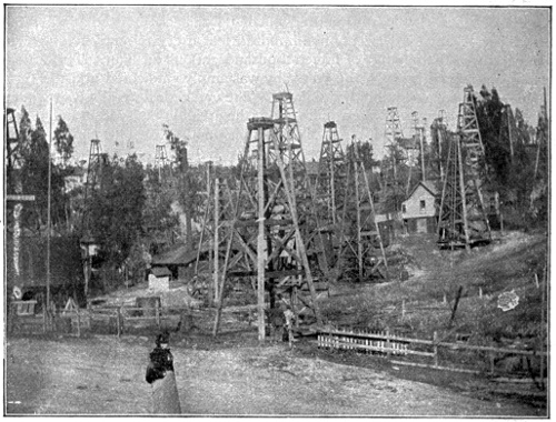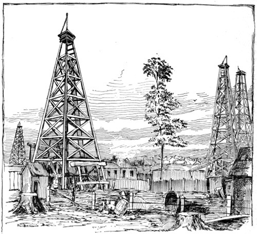 Six-thousand wells drilled and ninety-six-thousand barrels of production per day represent oil-operations in Pennsylvania in 1897. To this enormous output Ohio and Indiana added fifty-three-thousand barrels a day and thirty-six-hundred wells.