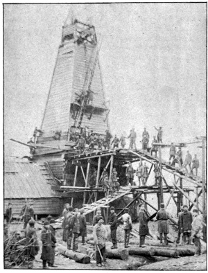 ROUSTABOUTS PREPARING TO CLEAN OUT A RUSSIAN OIL-WELL.
