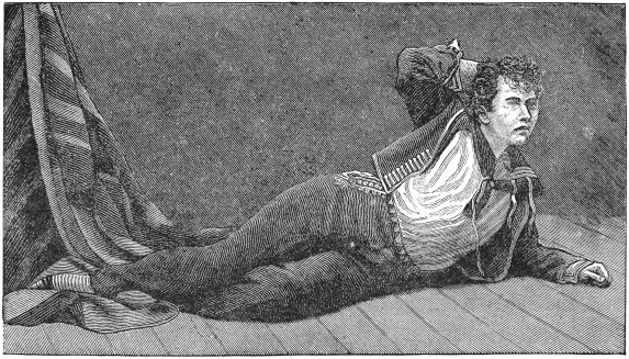 The designs so ineffaceably worked into Frumell's skin are numerous and beautiful, and some of them so appropriate to the young man's nationality that it is difficult to imagine how a South Pacific savage, even with an English sailor for an advisor, should have selected such fitting pictures. On his back, extending from shoulder to shoulder, and from the nape of the neck downward was a spirited illustration of two ships in action. Below it is a snake with protruding fangs589 and a scroll with Paul Jones's motto, "Don't tread on me." On his breast is the national coat of arms worked on the breast of an American eagle with pinions outspread, and the national colors in its beak. This covers the entire breast from armpit to armpit, and from the throat downward. Both arms are literally covered with designs of beasts, birds, and flowers. The lower limbs are also ornamented, one with the "Crucifixion of Christ" and the other with the shamrock, harp of Erin, and other designs. Each kneecap looks like a full-blown rose, with its vivid coloring and almost perfect imitation of that flower. The remainder of his body is similarly decorated, over five months being occupied in the process, and considerable more time being occupied in healing. His skin has the feeling of the finest velvet, and he says that he does not experience any evil effects from the immense quantity of poisonous dye injected into the cuticle. He has tried to eradicate the designs on his hands by burning, but without avail.