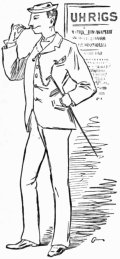 A traveller in Japan writing about the amusements there tells us of a very remarkable Sigmian specimen. He says: "There is an unpretentious show, costing one cent to witness, that is full of interest to those who have leanings toward Darwin's theory of the origin of mankind. It has a trained monkey of no mean attainments. The creature stands upright about three feet high, a well-developed and intellectual-looking monkey, which will go through all the posturing known to the famous India-rubber man, and some that that famous individual could not throw himself into, but the crowning feat that he has been taught is to dance the Japanese dance to perfection, taking the exact step, having the correct sway of the body, keeping time faultlessly, and using his arms and hands in exact accord with the movements of the feet. It is difficult to realize that a dumb brute can be educated as completely as this creature is. Oscar Wilde and this monkey would make a strong partnership in the platform business, for the monkey is certainly an æsthete—"a darling and a daisy."
