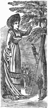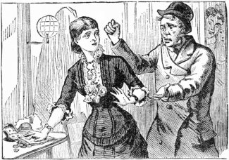 The "Wild Ape of Borneo" seems to be quite an intelligent animal and displays first-rate taste in choosing his company. He has learned by experience that girls were made to be hugged and kissed. Through the bars of his cage he has seen many a rural lass's waist in the power of a plough-boy's arm, and watched their lips meet in a smack that more than discounted the old minstrel joke about the sound resembling the noise made by a cow pulling her hoof out of the mud. It was no wonder, then, that when the "wild ape" got out of his cage, while the circus was exhibiting down South, he forgot all his Borneo breeding, and made a rush for one of the prettiest girls under the flapping canvas. He got one arm around her neck and with the paw that was free caught her chignon and made a desperate effort to obtain a kiss. The girl's escort was at first terrified and felt like climbing one of the quarter-poles, all the females in the neighborhood shrieked, and the males began to dive under their seats. At last a gentleman rushed up with drawn revolver596 and fired a shot close to the ape's ear, whereupon he at once abandoned his osculatory efforts, and made his escape.