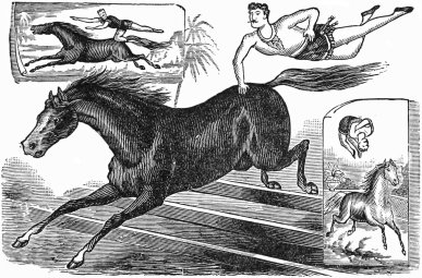 The menagerie, no matter how small or how extensive it may be, always has much within its cages and lying around under its canvas to interest young and old alike. It is like a volume of natural history that may be forever studied without exhausting the interest that attaches to it, and the knowledge contained in it. Thrown down after a single perusal, the book is picked up again and again, and each time its pictures and pages seem as fresh and entertaining as they were in the beginning. So, too, the collection of curiosities, that now-a-days form a very important part of every tent-show, never loses its attraction for the public. Gray-haired men who in boyhood looked, open-mouthed and astonished, into the den of lions, still find the same pleasure in contemplating these608 wonderful beasts from a safe distance, and take delight in making their children acquainted with them. The tangled forests and matted jungles of new regions are constantly giving up new specimens of wild animal life; and with the old reliable attractions still plentiful, and startling novelties occasionally coming to the surface, there is every reason to believe that the menagerie will retain its present hold upon the hearts of the people, and last as long as there is canvas in the world to cover one or color enough to fill an ordinary stand of bills.