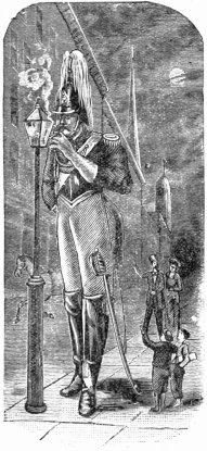 "The second room of Madame Tussaud's exhibition is called the Robe Room, which contains the figure of George IV. wearing the order of the Garter. This robe was worn by his majesty in the procession to Westminster Abbey, at his coronation. To the right of this is the robe the same monarch wore at the opening of Parliament, and on the left the robe worn by the King in returning to Westminster Abbey after the coronation. The cost of these three robes was about $90,000. The third room of the exhibition is called the Golden Chamber, and contains relics of the Emperor Napoleon, among which is the camp bedstead used by Napoleon during his seven years at St. Helena,607 with the mattress and pillow on which he died; the coronation robe of Napoleon and the robe of the Empress Josephine; the celebrated flag of Elba; the sword worn by the Emperor during his campaign in Egypt, and many other relics of him. In another room is the carriage in which Napoleon made the campaign of Russia, and which was captured on the evening of the battle of Waterloo; also the carriage he used at St. Helena, in which, of course, I sat down, according to custom.