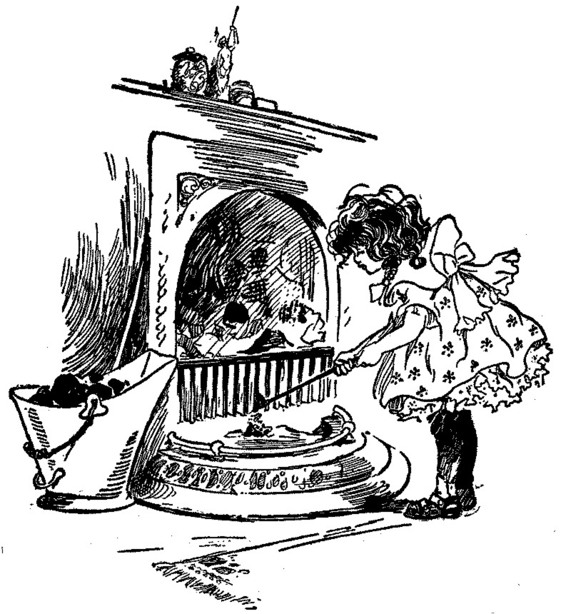 It was perfectly natural in one respect, anyhow. There was really no reason in the world why Tom should not lie upon the great bear-skin rug in front of the library fire those cold winter nights if he wanted to, nor need anyone be surprised that he should want to. It was indeed a most delightful place to lie in. The bear-skin was soft and in every way comfortable and comforting. The fireplace itself was one of those huge hospitable affairs that might pass in some apartment houses in our narrow cooped-up city streets for a butler's pantry or small reception room—in fact in the summer time Tom used to sit in the fireplace and pretend he was in his office transacting business with such of his sister's dolls as could be induced to visit him there; giving orders to imaginary clerks and bookkeepers and keeping an equally fanciful office boy continually on the run. And then apart from the rug and the fireplace it was a[Pg 10] beautiful room in which they were. Tom's father was very fond of books, and, although he was a great many years older than Tom, he had not forgotten how to enjoy the very same kind of books that Tom liked. He was not ashamed to have one little niche of his library filled with the stories which had delighted him in his boyhood days, and which still continued to please him, and, of course, this lent an additional charm to the library in Tom's eyes. It held his heroes, and on some of those drowsy nights when the only sounds to break the stillness of the room were the scratching of his father's pen, the soft humming of some little tune by his mother sitting and sewing by the evening lamp, and the fierce crackling of the burning logs, Tom could almost see these heroes stepping down from the shelves and like so many phantoms flitting in and about the room. In fact, upon one occasion, Tom is convinced he did see these very people having a dance upon the great tiled hearth—but of that you shall hear later.