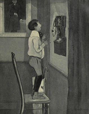 "Somebody's at the telephone," thought Jimmieboy, and started to go to it, when the ringing sound came again, but from a part[Pg 14] of the house entirely away from the neighborhood of the telephone.