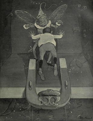 Well, Jimmieboy, fell in between and by some great good fortune, for which I am not at all prepared to account, landed in a heap immediately beside his little bed in the nursery, not dressed in his furs at all but in his night gown, while out of doors not a speck of snow was to be seen, and strangest of all, when he was really dressed and had gone down stairs, there stood Magic and the two swan heads, as spick and span as you please, still waiting to be tried.