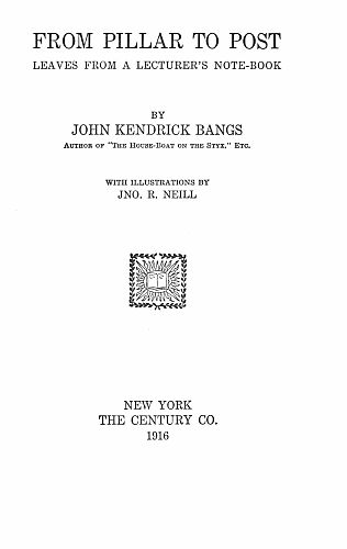 Wherefore before beginning our ramble from Pillar to Post I record here in testimony of my gratitude to them the names of Arthur C. Coit, and Louis J. Alber, of the Coit Lyceum Bureau of Cleveland, Ohio; of Frank A. Morgan, of the Mutual Lyceum Bureau, of Chicago; of Kenneth M. White, of the White Entertainment Bureau of Boston; of S. Russell Bridges, of the Alkahest Lyceum System of Atlanta, Georgia; of J. B. Pond, Jr., and that tried friend both in the Lyceum field and out of it, William C. Glass, of the J. B. Pond Lyceum Bureau of New York.