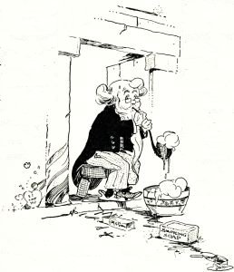 Mollie tapped gently on the window, and the Unwiseman, hurriedly concealing his half-eaten eclaire in the folds of his newspaper, looked anxiously toward the window to see who it might be that had disturbed him. When he saw who it was his face wreathed with smiles, and rushing to the window he threw it wide open.