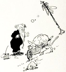 "Then I must have seen them," said the Unwiseman. "There was a thing went by here a week from next Tuesday noon that hadn't any wheels. It had two legs and carried a fan, or a fish-pole—I couldn't tell which it was—and it was whistling. Maybe that was one of the sheep."