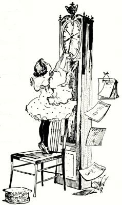 "Then there's only two things we can do," observed the Unwiseman. "Either I must send for a carpenter and have him build a new door or else I'll have to lend you a step-ladder. I guess, on the whole, the step-ladder is cheaper. It's certainly not so noisy[Pg 181] as a carpenter. However, I'll let you choose. Which shall it be?"