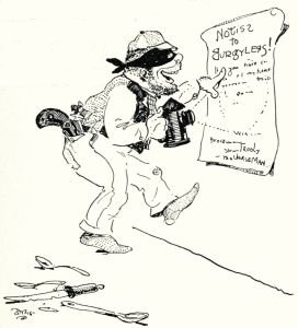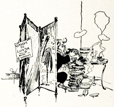 This was no sooner said than done, but the back door, like the first, was closed. Like the front door, too, it bore a placard, but this one read, "As I said before, I've gone to lunch. If you want to know when I'll be back, don't bother about ringing the bell to ask me, for I shall not answer. Go round to the front door and find out for yourself. Yours tooly, the Unwiseman. P. S. I've given up the potery business, so if you're a editor, I don't want to see you any how; but if your name's Mollie, knock on the kitchen window and I'll let you in."