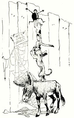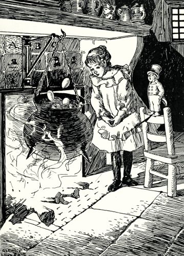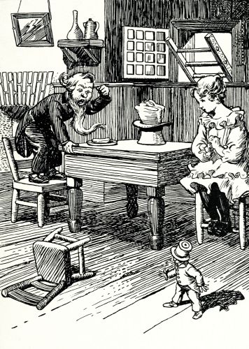 Whereupon the old man got up from his chair and climbed the oak tree to look for apples, while the searching party went on to the little old woman who lived under the hill, and Bopeep asked her if she knew anything about the sheep.
