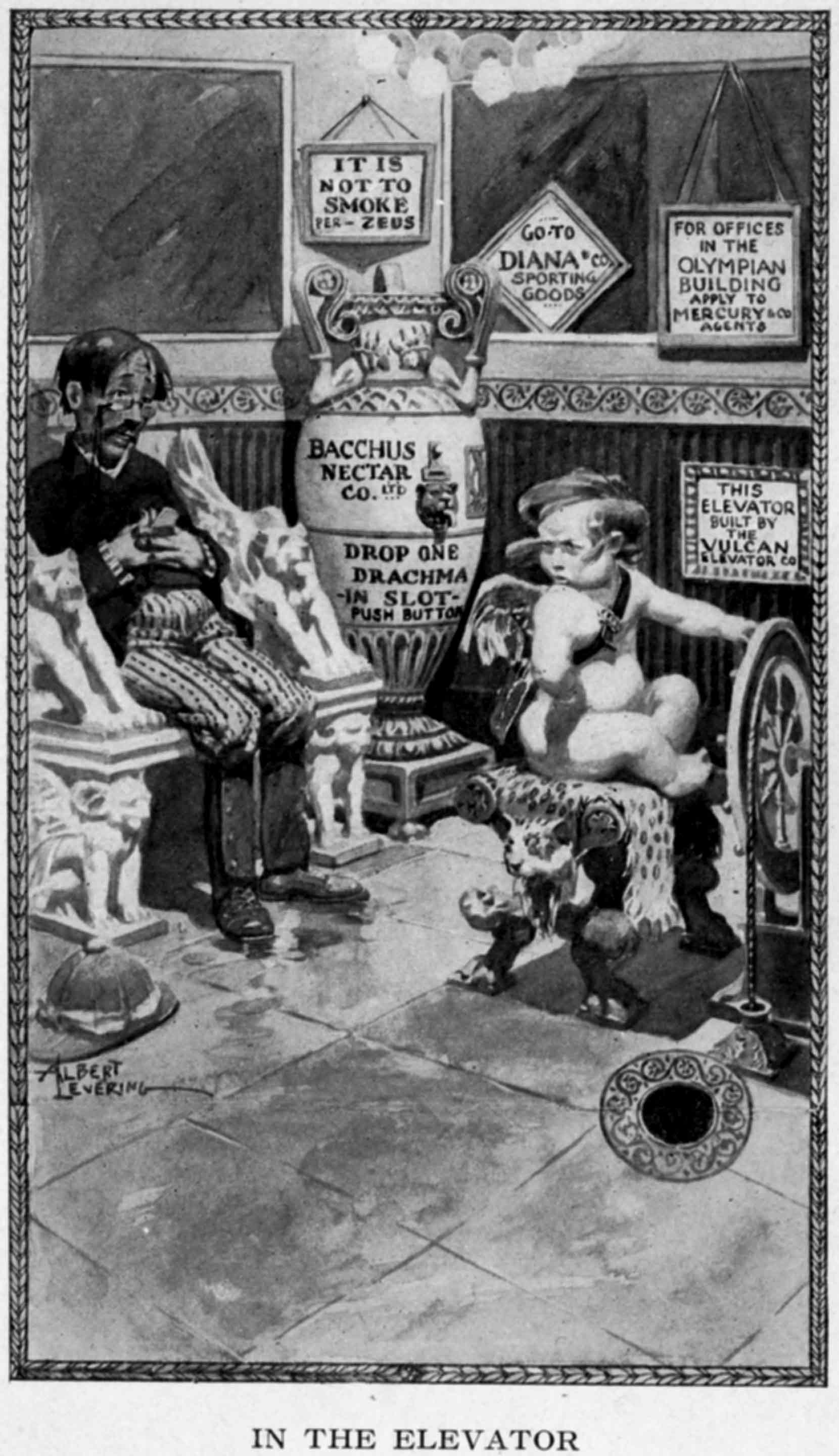 "Humph!" he said. "It is very evident that you people over the sea have very superficial notions of things here. When Mercury posed for that statue, like most of you people who have your photographs taken, he posed in full evening dress. That is why there is so little of it in evidence. But in his business suit, Mercury is a very different sort of a person. Even in Olympus he'd have been ruled off the stock exchange if he'd ventured to appear there as scantily attired as he is in most of his statuary appearances. You certainly are not so green as to[Pg 11] suppose that that suit he wears in his statues is the whole extent of his wardrobe?"