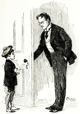 "Alas! Poor children!" cried the Idiot. "That is the saddest part of wealth. Instead of bringing the little ones up ourselves, to be wholly fashionable it will be necessary to sublet the contract to a committee of tutors and governesses. The obligations of social life hereafter will require that we meet our children by appointment only, and that when they dine they shall eat in solitary grandeur until they become so polished in manners that their parents may once more formally welcome them at table. All the good old democratic ways of the domestic republic are now to be set aside. Tommy, instead of yelling for a buckwheat-cake at the top of his lungs, upon our return will request a butler in choicest French to hand him a pâté de foie gras; and dear little Mollie will have to give up attracting the waitress' attention by shying an olive-pit at her and imperiously summon her by means of an electric buzzer set to buzzing with her toe."