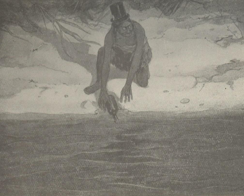 As if in confirmation of Kidd’s words, six of the pirate crew collapsed and disappeared into thin air, and a glance at Abeuchapeta was proof enough of his condition. He had become as clear as crystal, and had it not been for his rugged outlines he would hardly have been visible even to his fellow-spirits. As for Kidd, he had taken on the aspect of a rainbow, and it was patent that his fears for himself were all too well founded.