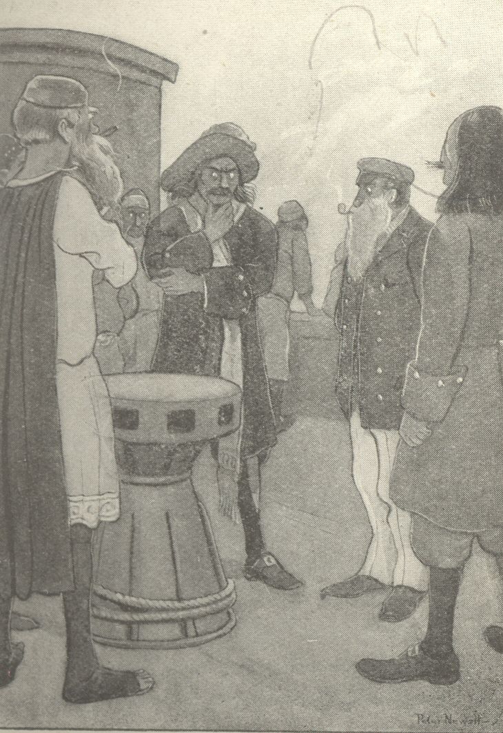 “So that we can expel him,” said Ward. And while Boswell’s hero was trying to get the value of this notion through his head, the others repaired to the deck, and the Gehenna was soon under way once more. Meanwhile Captain Kidd and his fellows were put in irons and stowed away in the forecastle, alongside of the water-cask in which Shylock lay in hiding.