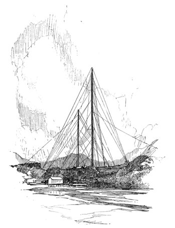 The age of wire was marching rapidly, but John A. Roebling had set a distant mark. In the mountains of Peru, India and other lands for ages the natives have made use of bridges made of vines, to cross appalling chasms. As time went on and arts progressed the principle was applied through the agency of hemp ropes and chains, and men of small imagination thought that in these the limit had been attained. But Roebling’s faith was as the faith of the Moslem in the Prophet. He believed that in wire the solution of all the pesky problems of bridge-building had been found. In a small way the thing was obvious, but his ambition never stopped there. He believed, and had believed ever since he made the first rope, that a major bridge made up of wires of scrupulously high quality, constructed with rigorous regard for scientific tenets, would carry with ease and indefinitely any reasonable traffic that might be imposed on it.