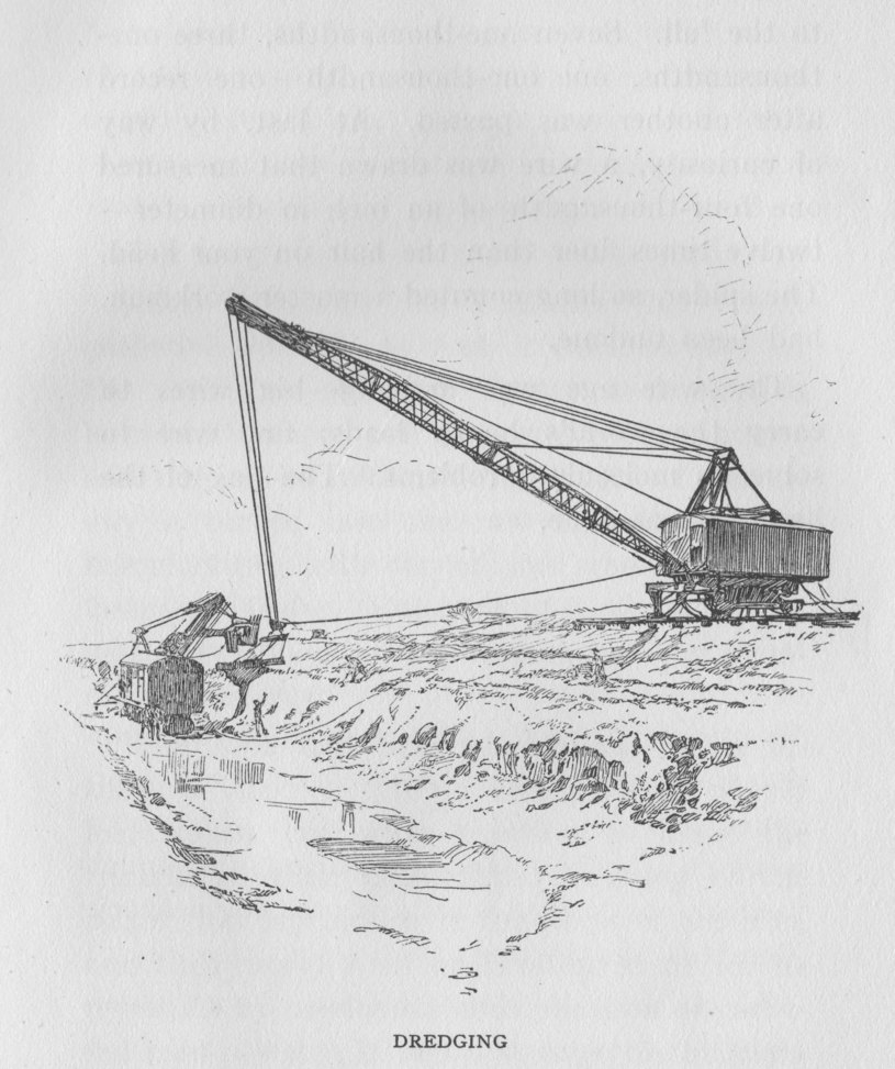From the day when the thing was decided on, no grass grew under anybody’s feet. There was sand along that bucolic and undeveloped river bank, sand that ran well back, getting more and more like loam as you left the river. It was broken and uneven. The freshets of centuries had left hollows here and hummocks there. They were levelled. The knolls—dunes they would call them along Lake Michigan—were scraped down and dumped into the swales, and the excess was thrown into a sedgy morass along the river front, to make it into solid ground and give a clean, healthy shore, which is now one of the chief charms of the place. For the sections where grass was meant to grow—for dooryards and the like—tons upon tons of “top soil” were brought in to give a fertile surface.