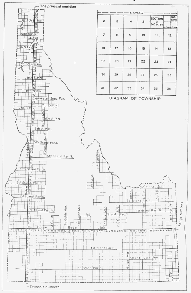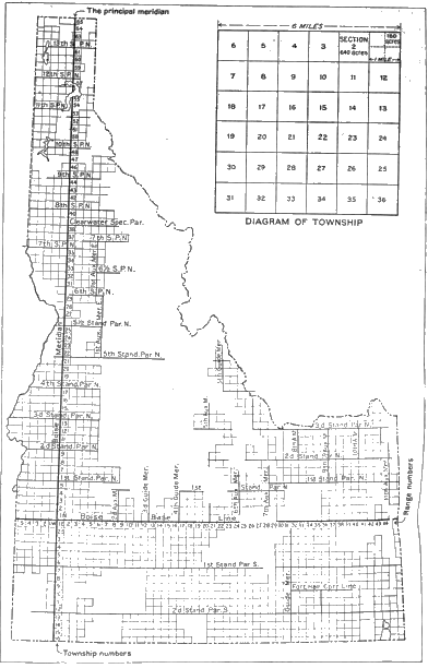 Public-land maps, meridians, parallels, and township lines used on, diagram showing. 16