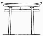 And if indeed, the Torii[1] be nothing but the first bird-perch, then I can imagine the father of all peacocks spreading his gigantic fan across its bars; or I may prefer to suppose it the rest for the disk of the sun-god, whose lower curve is repeated by the Torii's upper beam.