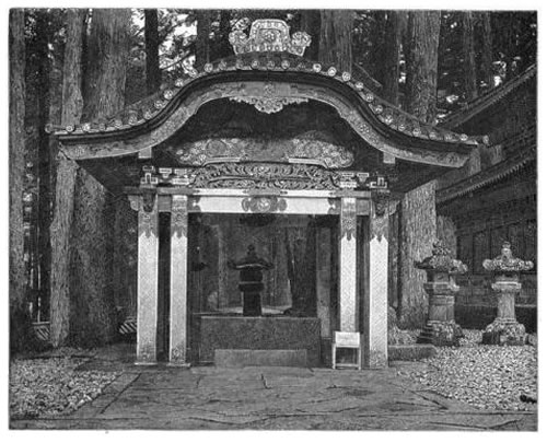 Iyéyasŭ died in 1616, having fought, he said, ninety battles and eighteen times escaped death, having almost destroyed Christianity, and leaving his family established as rulers of Japan. In obedience to his dying wishes, his son and successor removed the body of his father from its resting-place in the south to this final tomb at Nikko. Here, in 1617, with complicated and mystic ceremonial, he was buried and deified.