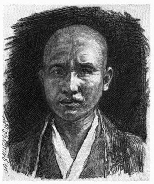 We selected as a leader Chojiro, who speaks English—a little; is a traveled man, having gone as far as Constantinople; wears the old-fashioned queue, flattened forward over the top of his shaven head; and whose naked feet were to run through the day over newly-macadamized roads, for which a horse would need to be well shod. A little way from us, on the square, stood the car of the tramway, which runs as far as Asakusa, to the great popular temples of protecting divinities, Kuwanon and Jizo,—and Benten, from whose shrine flowed one day copper coins as if from a fountain,—where Buddhist sermons are preached daily; which are full of innumerable images, pictures, and ex-votos; and where prayer-wheels, duly turned, helped the worshiper to be free from annoying sins, or to obtain his desires.