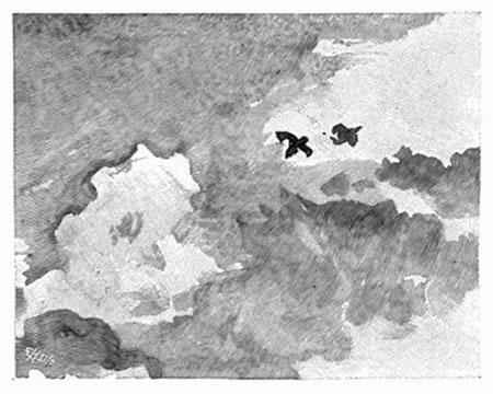 We were in the great bay when I came up on deck in the early morning. The sea was smooth like the brilliant blank paper of the prints; a vast surface of water reflecting the light of the sky as if it were thicker air. Far-off streaks of blue light, like finest washes of the brush, determined distances. Beyond, in a white haze, the square white sails spotted the white horizon and floated above it.