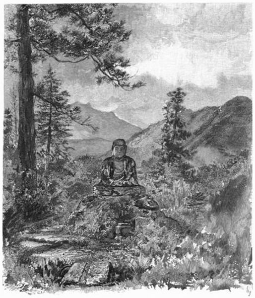 The cholera was upon us, and we decided to go to Nikko and spend a month there, near the F——s'. The Doctor, who was anxious to get back to its coolness and its other charms, was to pilot us and instruct us by the way, and much of the miscellaneous information that I shall give you has come more or less from him. Late in the morning we rode to Tokio, and lunched in Uyèno Park, looking down on the great pond and the little temple which stands in it, and which you know, having seen them on the fans and colored prints. They were veiled in the haze of the sunlight, as if in a spring or winter mist, and through this fog of light shone the multitudinous little sparkles of the ribs and swellings of the lotus-pads lapping one over another, and reaching to far streaks of clearer water. A denser lightness here and there marked the places of the flowers, and a faint odor came up in lazy whiffs. The roof of the temple seemed to be supported by the moisture below. Above there was no cloud. All things lay alike in the blaze, enveloped in a white glimmer of heat and wet, and between the branches of the trees around us the sky was veiled in blue. The locusts hissed with a crackling sound like that of heated wood. The ugly bronze Buddha at the corner of the tea-house shone as if melting in the sun. Then came the moment of leaving for the station, where, owing to delays of trains, we waited still longer in the heat. In the cleanly waiting-room we looked at the illustrations in[Pg 30] the Japanese newspapers, and at the last report of the weather bureau, printed in English and fastened to the wall; or we read a little in that morning's edition of the excellent Yokohama English paper; all these comforts of civilization being supplied by the Road. At length the noise of hundreds of wooden clogs, worn by men, women, and children, clattered upon the stones outside and announced an end to waiting. The tightly-closed train had been baking in the sun all day, and we leaned out of the doors on the sides and gasped for breath.