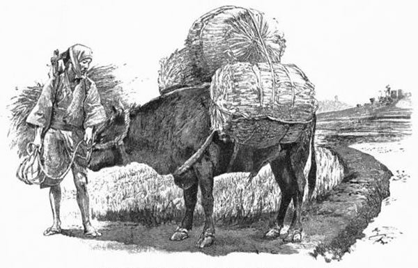 PEASANT CARRYING FODDER, AND BULL CARRYING LOAD.