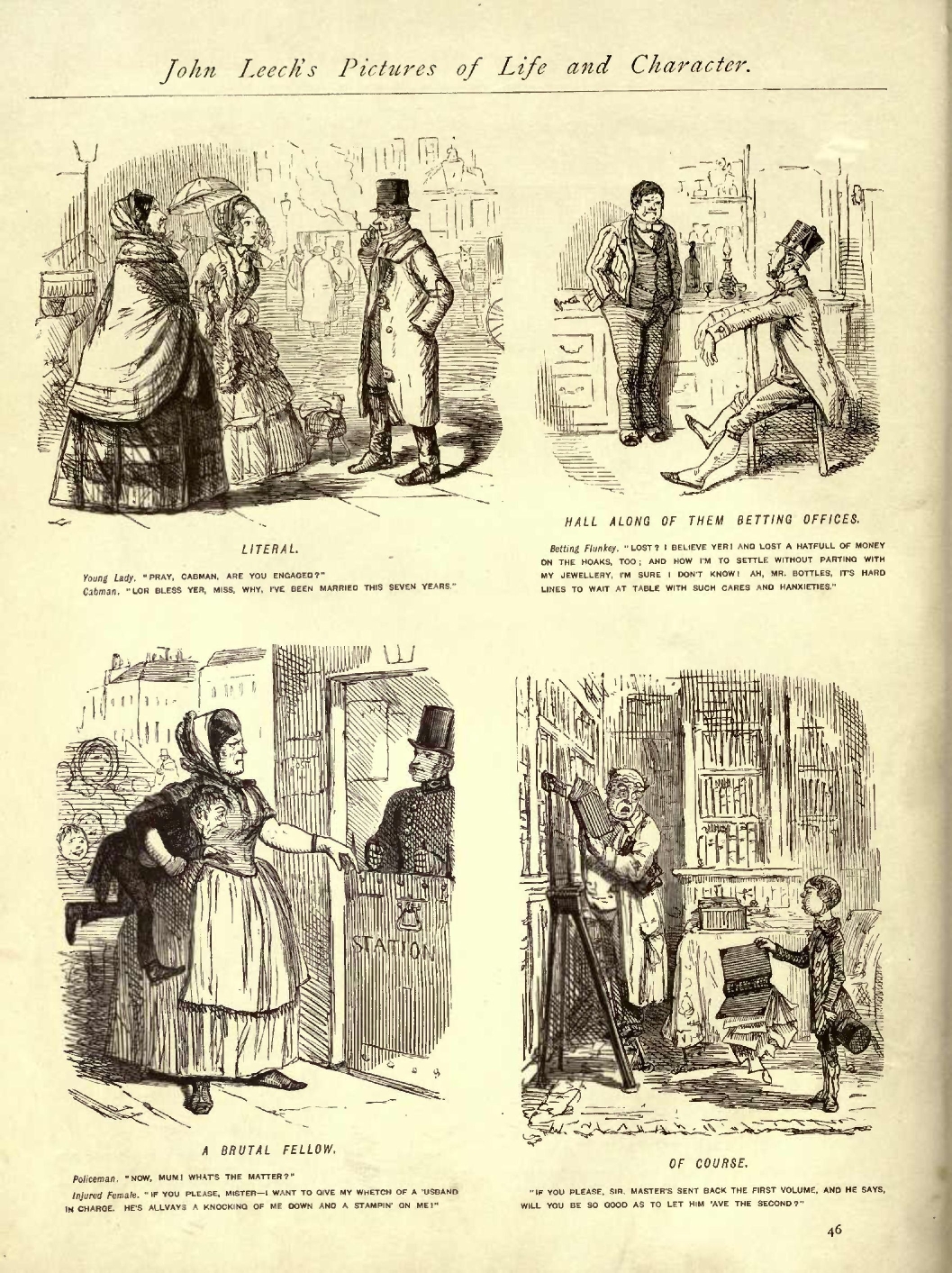Candid.................................................1848...127 Capital Offer, A.......................................1854...208 Caught.................................................1847...098 Cause for Reproof, A ..................................1847...257 Caution to a Little Boy at a Festive Season, A ........1853...119 Changing the Subject ..................................1848...122 Chatelaine, The........................................1849...064 Cheap Day's Hunting, A.................................1849...184 ...185 Church and State ......................................1851...057 Close of the Season—The London Footman exhausted .....1846...279 Cold Comfort...........................................1849...139 Coming to the Point....................................1848...019 Coming Home ...........................................1853...086 Comparative Love.......................................1851...174 Complimentary .........................................1850...065 Complimentary .........................................1855...261 Compliments ...........................................1854...246 Confound the Shops.....................................1852...054 Conscientious Stable Keeper, The.......................1853...068 Consols at 90, Consols at 80 ..........................1848...167 Consolation............................................1845...118 Constitutional Walk, The...............................1853...258 Cool Assurance.........................................1854...205 Correct Mode of Riding in Rotten Row...................1851...007 Country Ball, A........................................1851...128 Country Races .........................................1854...243 Court Dress, A ........................................1848...005 Cruel .................................................1851...006 Cruel .................................................1853...110 Curious Mode of Conducting a Retail Establishment......1855...225 Curious Person, A......................................1852...278 Cut Him down Behind....................................1852...063
