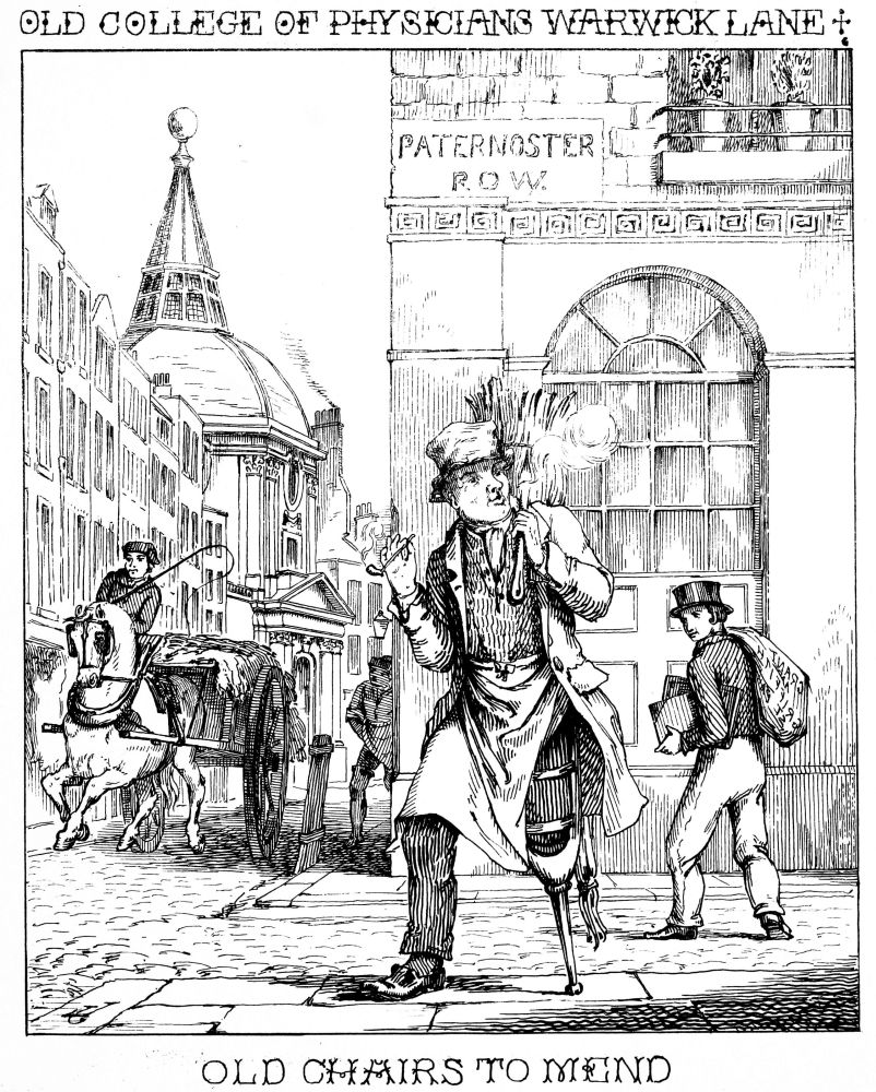 This artificer does not necessarily pay much rent for workshops, as he commences operations with his canes or rushes up the nearest court or gateway; or, if the chairs are not wanted in a great hurry, asks permission to take them home, that he may work them in his back-room with more convenience, returning them to their owners when he next comes his rounds.
