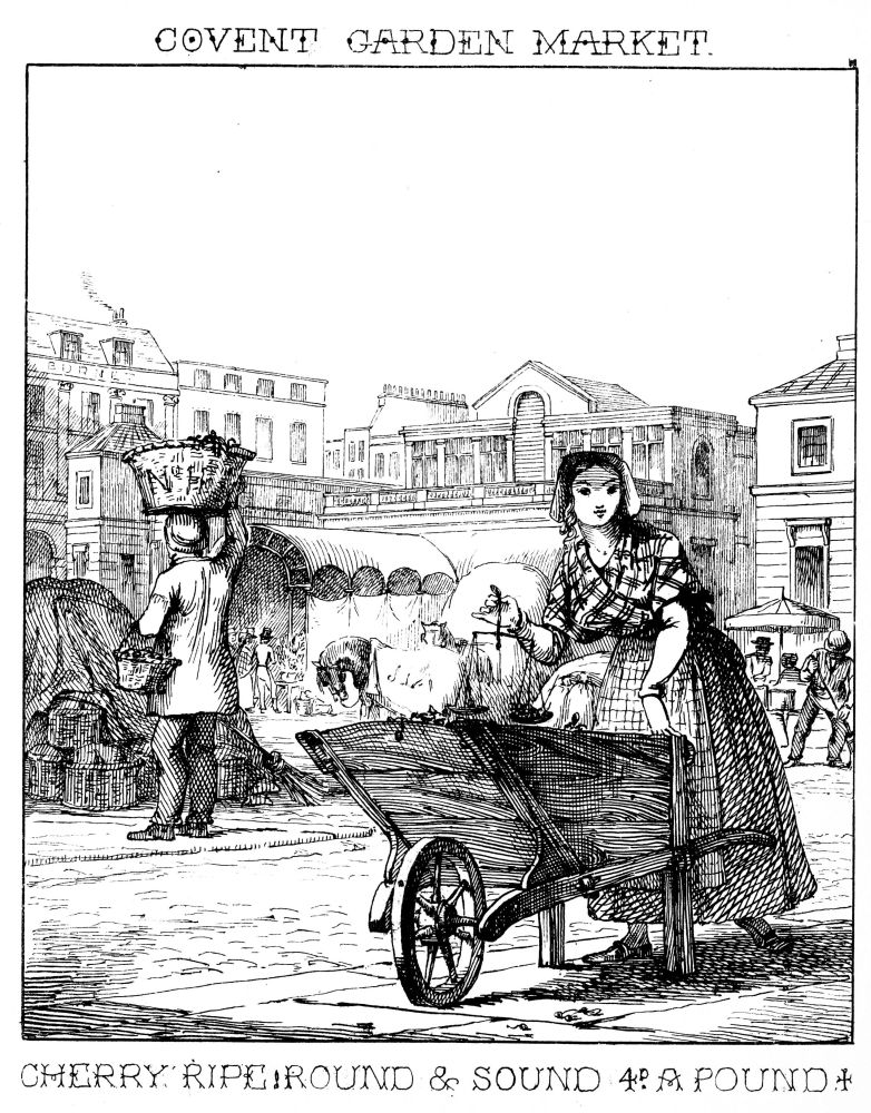 Of cherries there are a great variety; most come from the county of Kent, and are sold in the streets of London, sometimes as low as one penny per pound! the sellers of which are often addicted to giving short weight, as their customers apprehend, hence the cry of “full weight.”