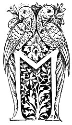 For pious Muhammadans it has long been a practice of Oriental penmen, who are often artists, to weave[326] the fine forms of Persian letters into the outlines of animals or birds. I give an example of the Prophet's mystic horse, Borak, which contains a whole litany of prayers. An elephant on the cover, a tiger on the dedicatory page, and the birds over the monogram of the publishers of this book, are also woven in words of prayer. Every creature alive can be thus represented, and the piety of the inscription covers the profanity of the picture. Muhammadanism, like more religions, is full of ingenious little compromises and transactions after this kind. A more frank defiance of the laws by which at the supreme moments of their lives they profess themselves bound, is characteristic of Christians—