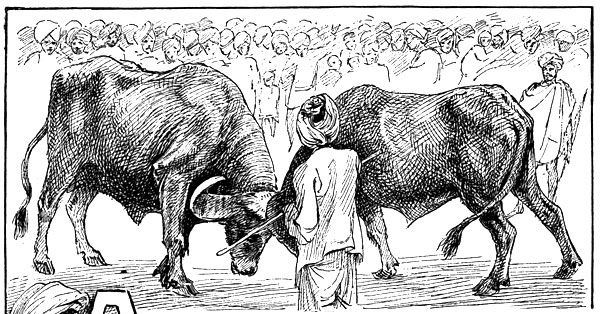 There are indeed beast fights, promoted by men, which are simply developments of the beneficent principle described by modern science as the survival of the fittest. Of these are the spring-time buffalo bull fights treated as solemnities by Indian herdsmen. Once diversions of the pastoral prime, these conflicts are still annually brought off, even in Bombay, within sight of railways and telegraph posts. The men say—and doubtless with truth—that they are useful in showing decisively which animal is best fitted to be a sire. Such fights are not always brought about by the herdsmen. One of the most impressive pictures of defeat I[346] ever saw was one evening on a lonely road in the Western Ghauts, when a buffalo bull suddenly appeared against the sunset in labouring flight, rolling as he staggered along like a rudderless ship, his mouth and nostrils foaming, a horn broken, and his black flanks stained with blood. A long way behind him came the conqueror, bearing marks of the fight, but lumbering easily forward, half minded to stop; content that his foe was beaten and flying.