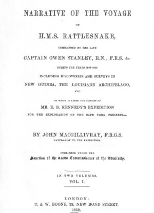 It was originally intended that an account of the Surveying Voyage of H.M.S. Rattlesnake should have been undertaken conjointly by the late Captain Owen Stanley and myself, in which case the narrative would have been constructed from the materials afforded by the journals of both, and the necessary remarks upon hydrographical subjects would have been furnished by that officer, whose lamented death in March, 1850, prevented this arrangement from being carried out. Not having had access to Captain Stanley's private journals, I considered myself fortunate, when the Lords Commissioners of the Admiralty--in addition to sanctioning the publication of my account of the Voyage in question--directed that every facility should be afforded me in consulting the manuscript charts and other hydrographical results at their disposal, and to Rear-Admiral Sir F. Beaufort, C.B., Commander C.B. Yule, R.N., and Lieutenant J. Dayman, R.N., I beg to express my thanks for the liberal manner in which they carried out their Lordships' intentions.