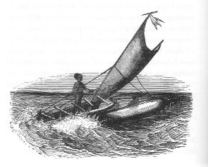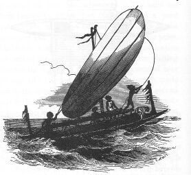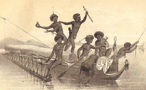 CANOE AND NATIVES OF BRUMER ISLAND, NEW GUINEA.