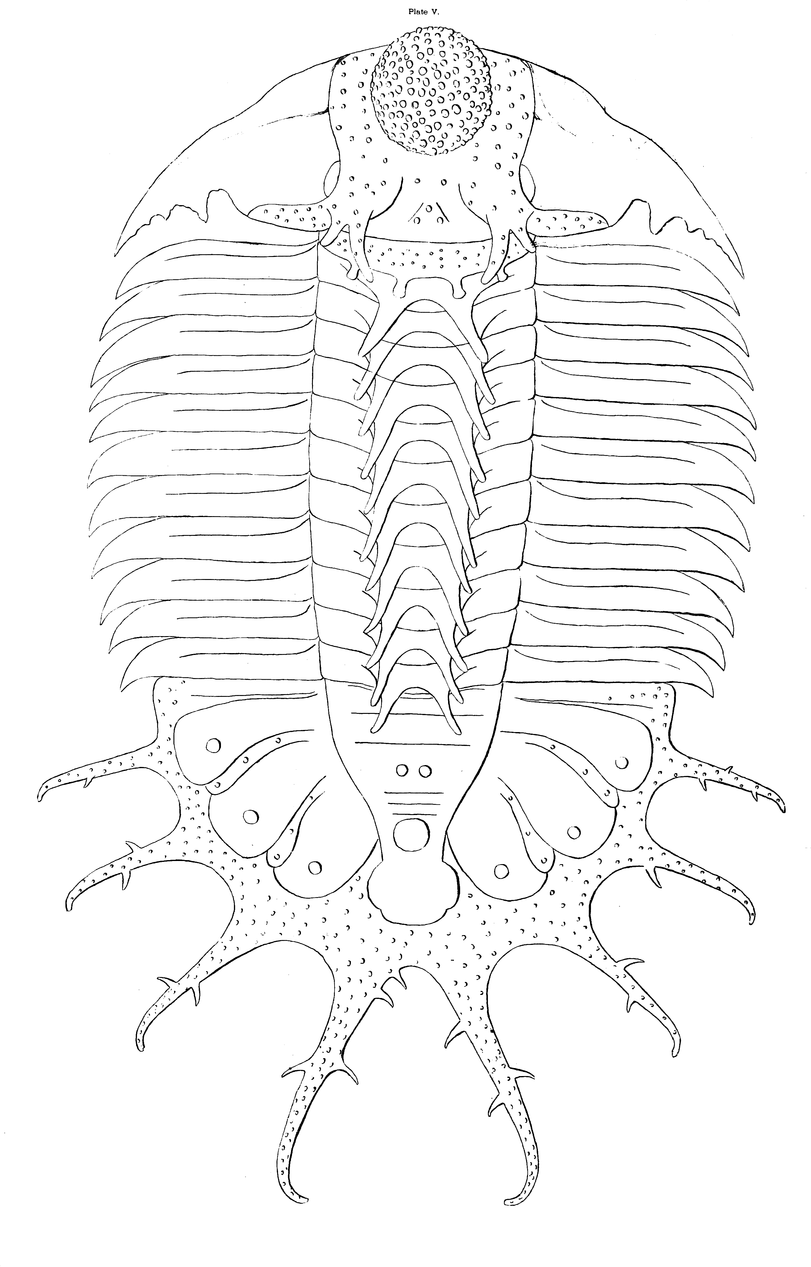 Almost with the earliest known appearance of the Trilobites the genus Paradoxides attained magnificent proportions. Paradoxides Harlani, the well-known species of the Braintree agilities, must have grown to a length of 18 inches. Angelin has figured an entire specimen of P. Tessini 12 inches in length, and Barrande a fragment of an individual of P. imperialis which must have had about the same size. Mr. G. F. Matthew has described a nearly entire individual of an immense P. regina from the St. John beds, 15 inches long and 12 inches across the base of the cephalon, and it is claimed, with undoubted accuracy, that this is the largest undismembered specimen of a trilobite found in any country.