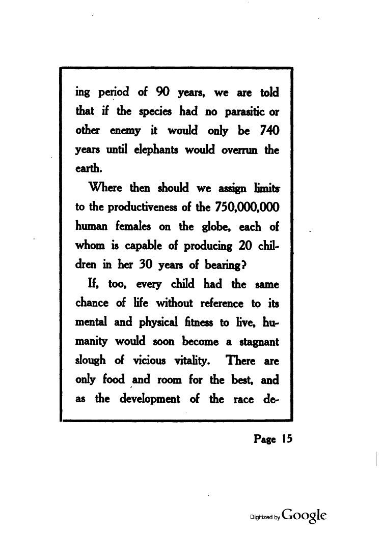 Where then should we assign limits to the productiveness of the 750,000,000 human females on the globe, each of whom is capable of producing 20 children in her 30 years of bearing?