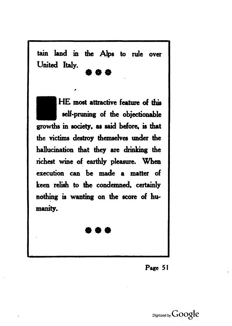THE most attractive feature of this self-pruning of the objectionable growths in society, as said before, is that the victims destroy themselves under the hallucination that they are drinking the richest wine of earthly pleasure. When execution can be made a matter of keen relish to the condemned, certainly nothing is wanting on the score of humanity.