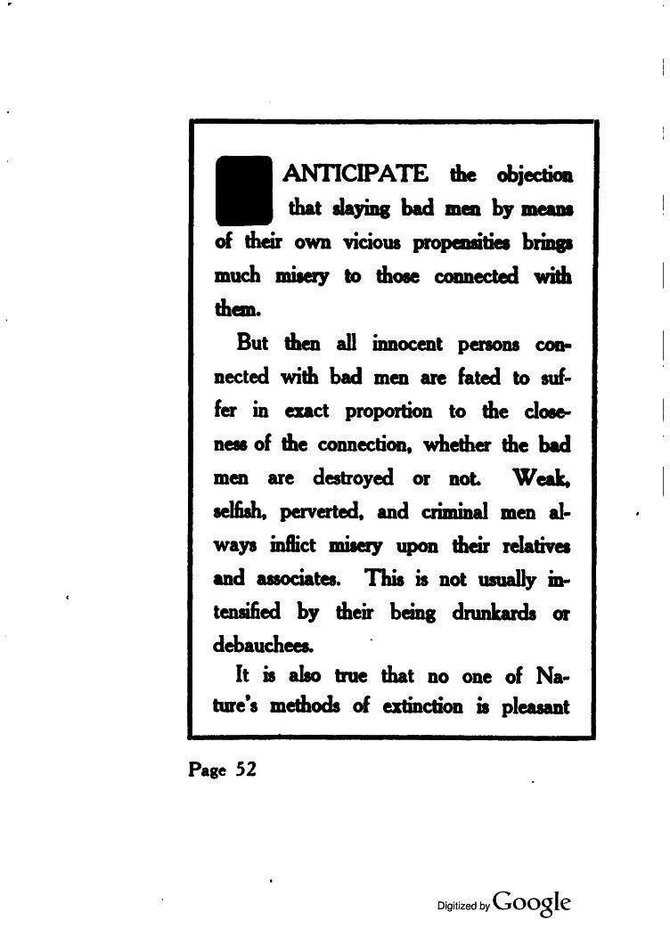 {51} I ANTICIPATE the objection that slaying bad men by means of their own vicious propensities brings much misery to those connected with them.