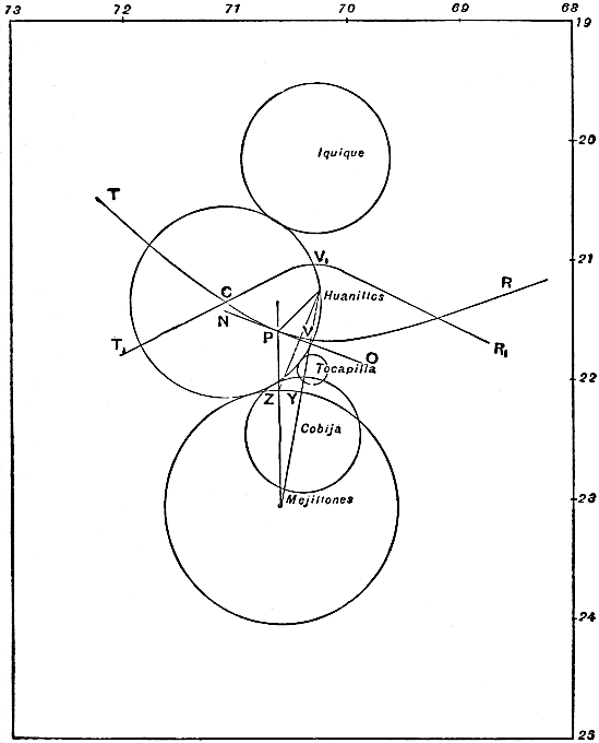 | Approximate determination of an origin—Earthquake-hunting in Japan—Determinations by direction of motion—Direction indicated by destruction of buildings—Direction determined by rotation—Cause of rotation—The use of time observations—Errors in such observations—Origin determined by the method of straight lines—The method of circles, the method of hyperbolas, the method of co-ordinates—Haughton’s method—Difference in time between sound, earth, and water waves—Method of Seebach | 187 |