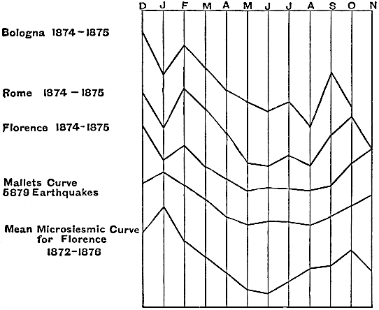 | The occurrence of earthquakes in relation to the position of the heavenly bodies—Earthquakes and the moon—Earthquakes and the sun; and the seasons; the months—Planets and meteors—Hours at which earthquakes are frequent—Earthquakes and sun spots—Earthquakes and the aurora | 250 |