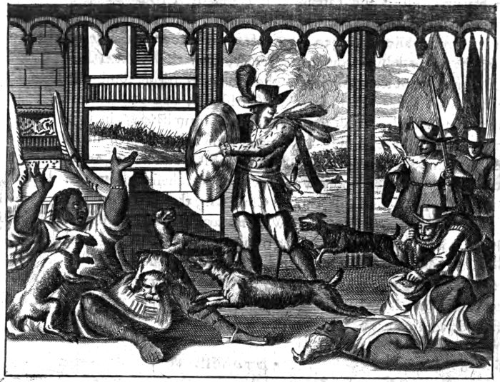 This Countrey is call’d by the Natives, Secanunga; who was the first Discoverer thereof is not certainly known, but the first chief Voyagers thither were, of the Dutch, William Barents, or Barentson, of Amsterdam, who set forth towards those Parts in the Year 1594. and before him, Dithmar Blefkens, in the Year 1563. of the English, Mr. James Hall, who set out from Copenhagen in Denmark, Anno 1605. and in a second Voyage was slain by a Salvage of the Countrey.